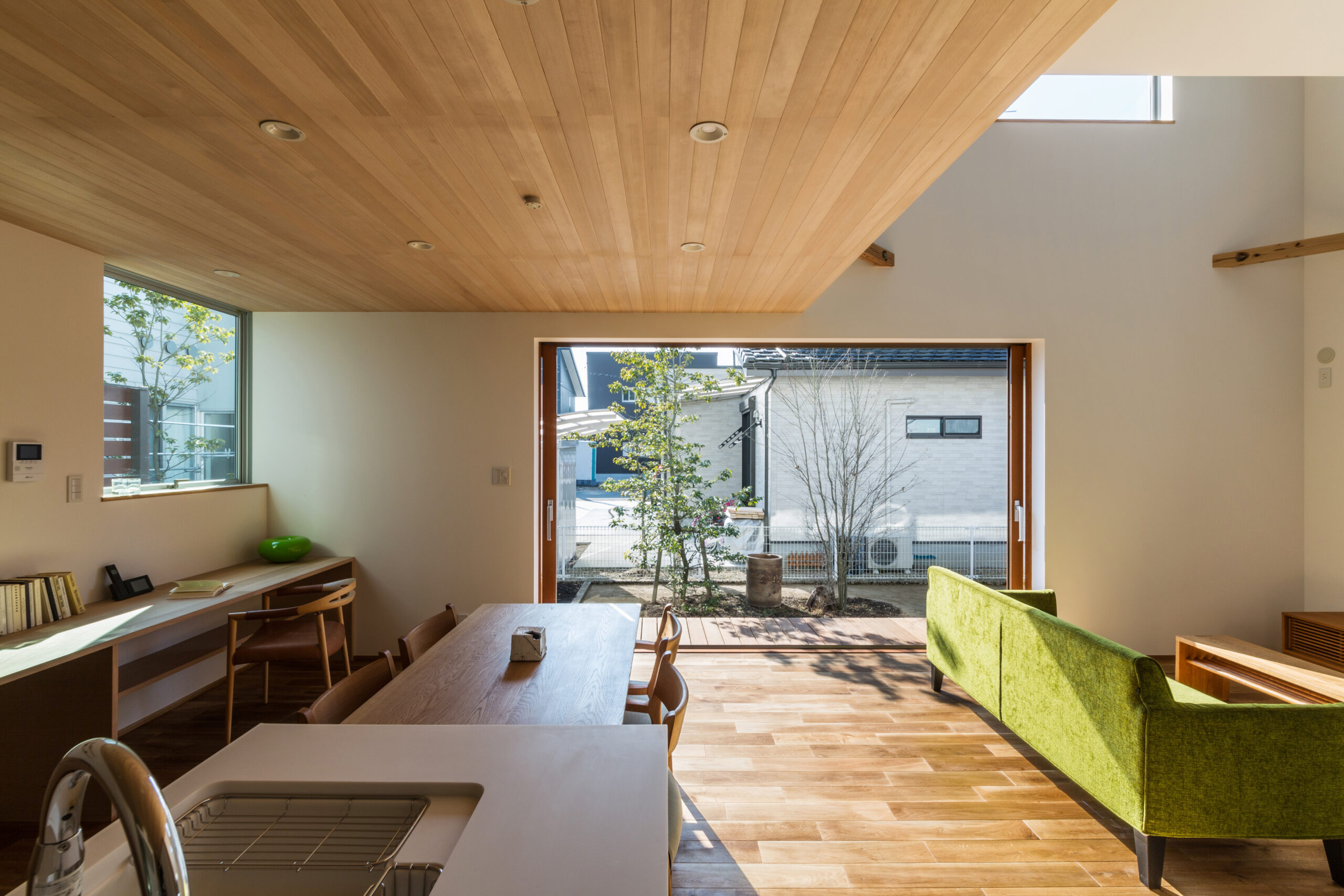 天気の良い日に縁側に座り、軒の調節してくれたちょうどよい陽の光をまぶたに感じながら日向ぼっこをしたり、天窓から差す陽で自然と温まる空間。
