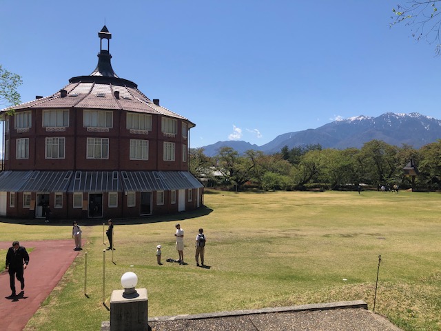芝生の中に建物が佇む風景はとても居心地のいい場所。