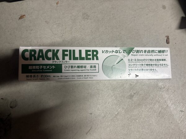 今回が、土間コンクリートによく見られる「クラック(ひび割れ)」補修の作業です。