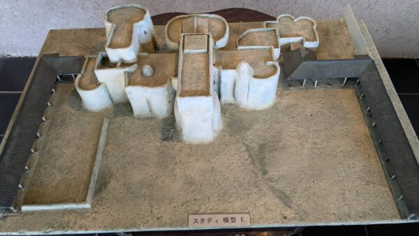 砂漠の遺跡や洞窟寺院(敦煌の莫高窟など)を彷彿とさせる、窓のない白いコンクリートの外壁が特徴で、内部は曲線が多用され、まるで洞窟の中に迷い込んだような感覚を与えます。