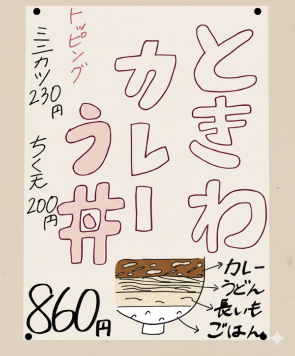 「さしみうどん」が引き算の美学なら、「カレーう丼」は足し算の美学といったところでしょうか。