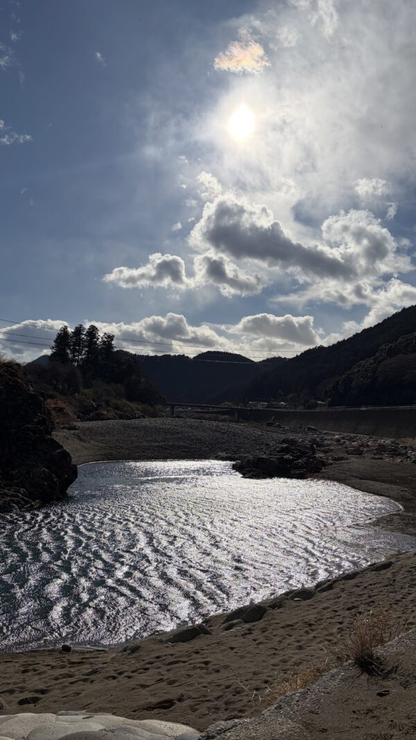 澄んだ川の流れと、周りの山の自然。