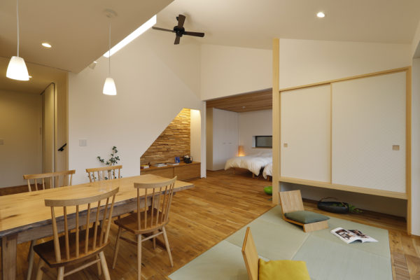 畳コーナーを設け、和とモダンが融合する現代風のおしゃれな空間に。