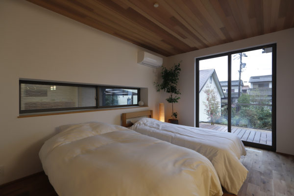 もちろんご夫婦の寝室も窓から緑が楽しめる、落ち着いた空間に仕上げました。