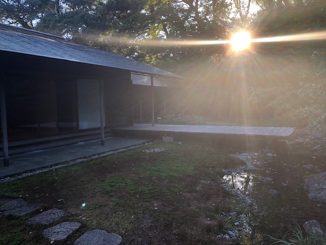 ディテールの洗練: 軒先や木製建具の見付を極限まで薄く、細く見せる「おさまり」の技術が随所に凝らされています。庭園との「切り取り」