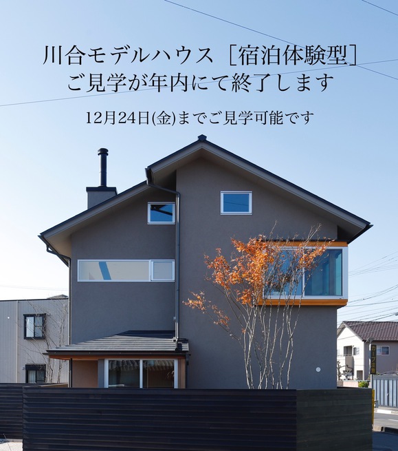 川合モデルハウス[宿泊体験型]のご案内を、年内いっぱいで終了とさせていただきます。