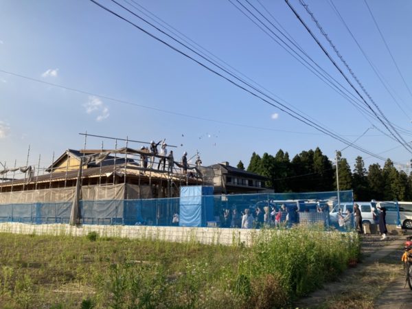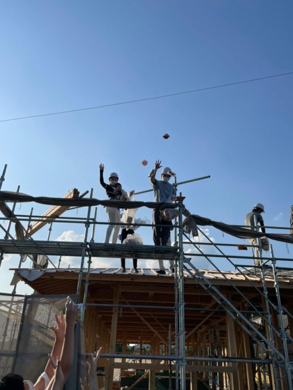 徐々に見られなくなりつつあるお菓子撒きですが、この日はたくさんの方と上棟の日をお祝いする、和やかなひとときを過ごさせていただきました。素敵な時間をありがとうございました。