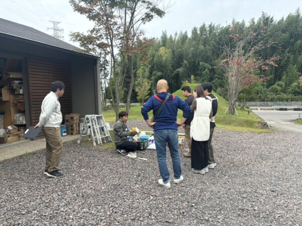 大幸住宅可児工房の倉庫の木製扉の塗装体験を行っていただきました。