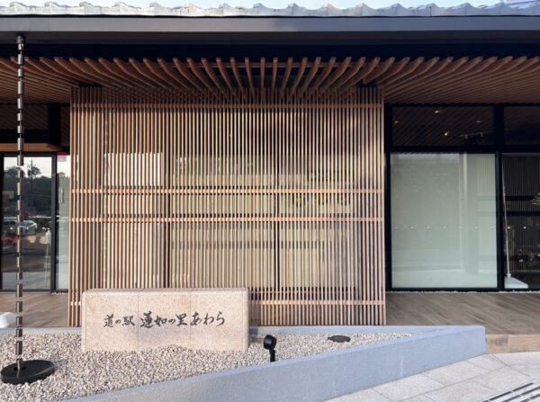 「蓮如の里あわら」という道の駅で、大きな瓦屋根と格子がとても綺麗でした。