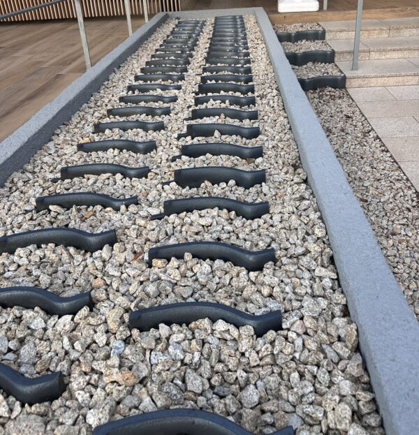 その中でもアプローチが驚きで、砂利の中に瓦が埋めてありました!