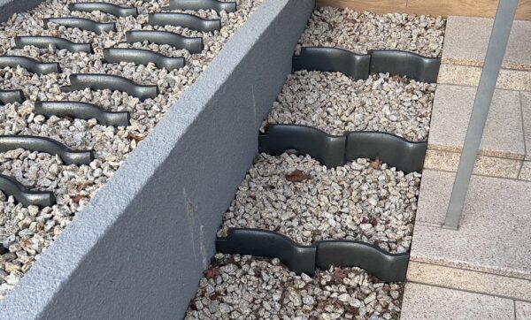 伝統的な町が多いので、瓦をアプローチのアクセントに利用するしたのだと思います。