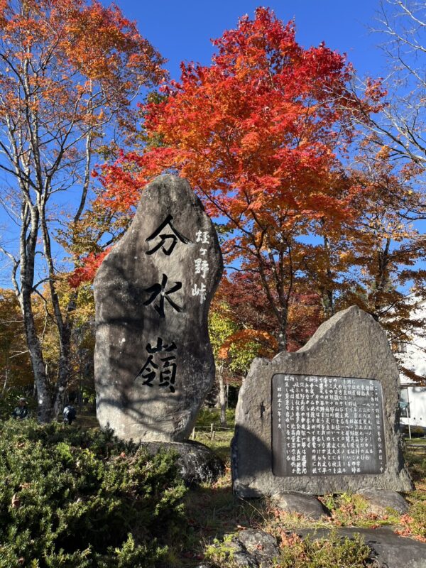 思わずきれいな紅葉に惹かれ分水嶺に立ち寄りました。