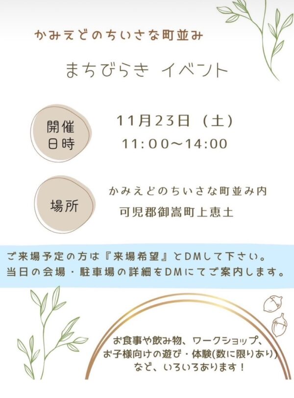 さて、11/23は 【かみえどちいさな街並み まちびらきイベント】を開催いたします!