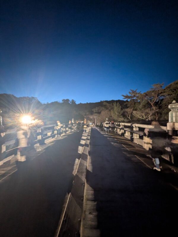 参道が、まだ薄暗くはありましたが、それはそれで神秘的でした。