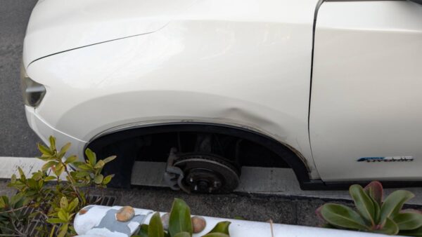 訳が分からなかったのですが、左前のタイヤが確かになくなっていました。