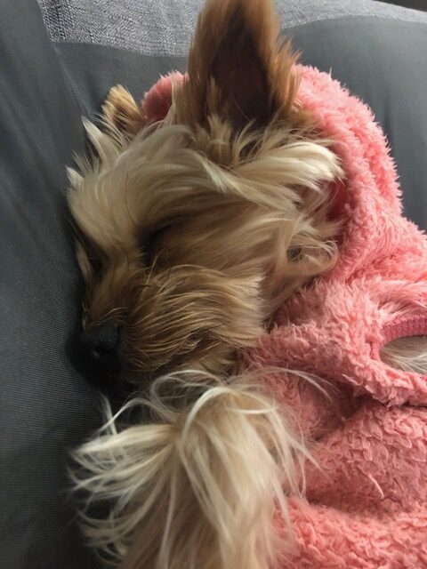 今回は愛犬について書きます。我が家には3匹のヨークシャテリアがいますがそのうちの1匹を紹介します。名前はウメといいます。8歳の女の子です。好きな事はスリッパと戯れる事、散歩、ご飯、寝る事です。