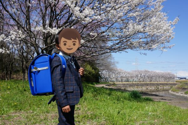自分で決めたピカピカの真っ青なランドセルを背負って