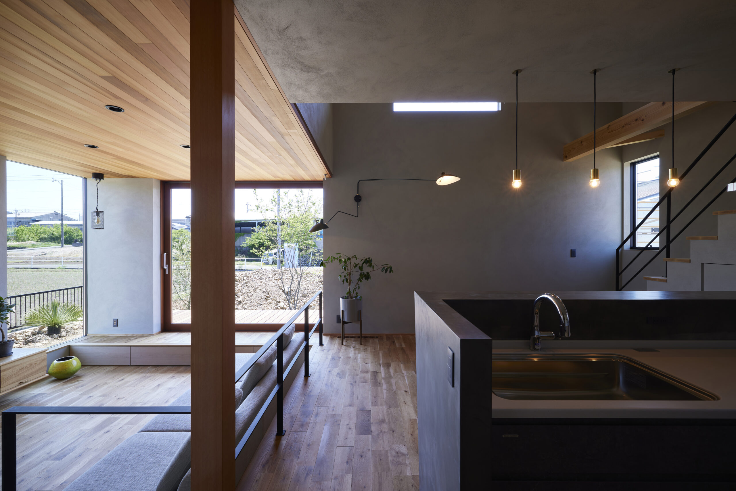 ・リビングの床を一段下げ、落ち着いてくつろげるダウンリビングに窓際に腰を掛けて庭をながめながらゆっくりと過ごせます