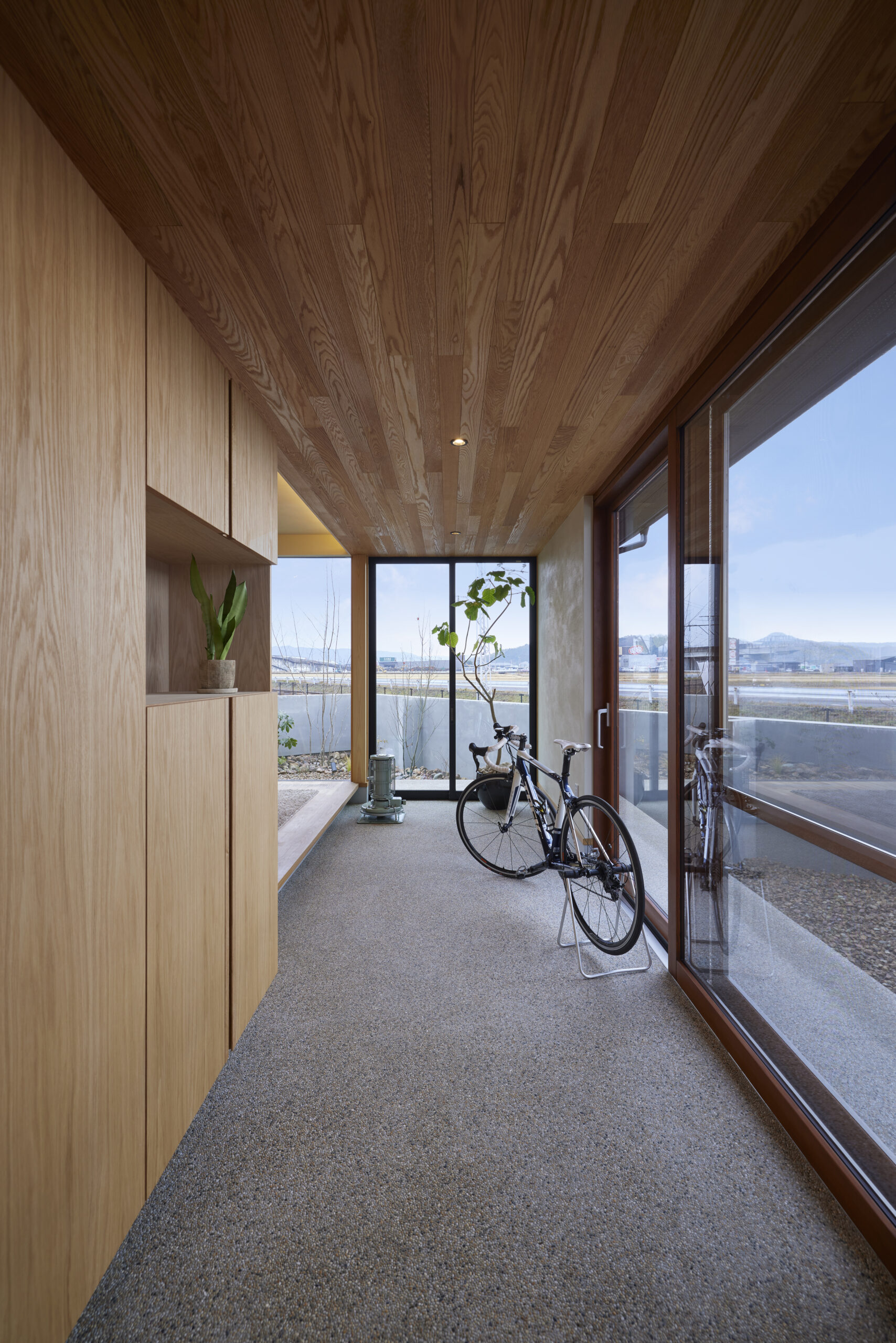 趣味の時間も充実:土間の一角は、愛用の自転車のメンテナンススペースに。広々とした空間で、愛車を眺めながら心地よい時間を過ごせます。