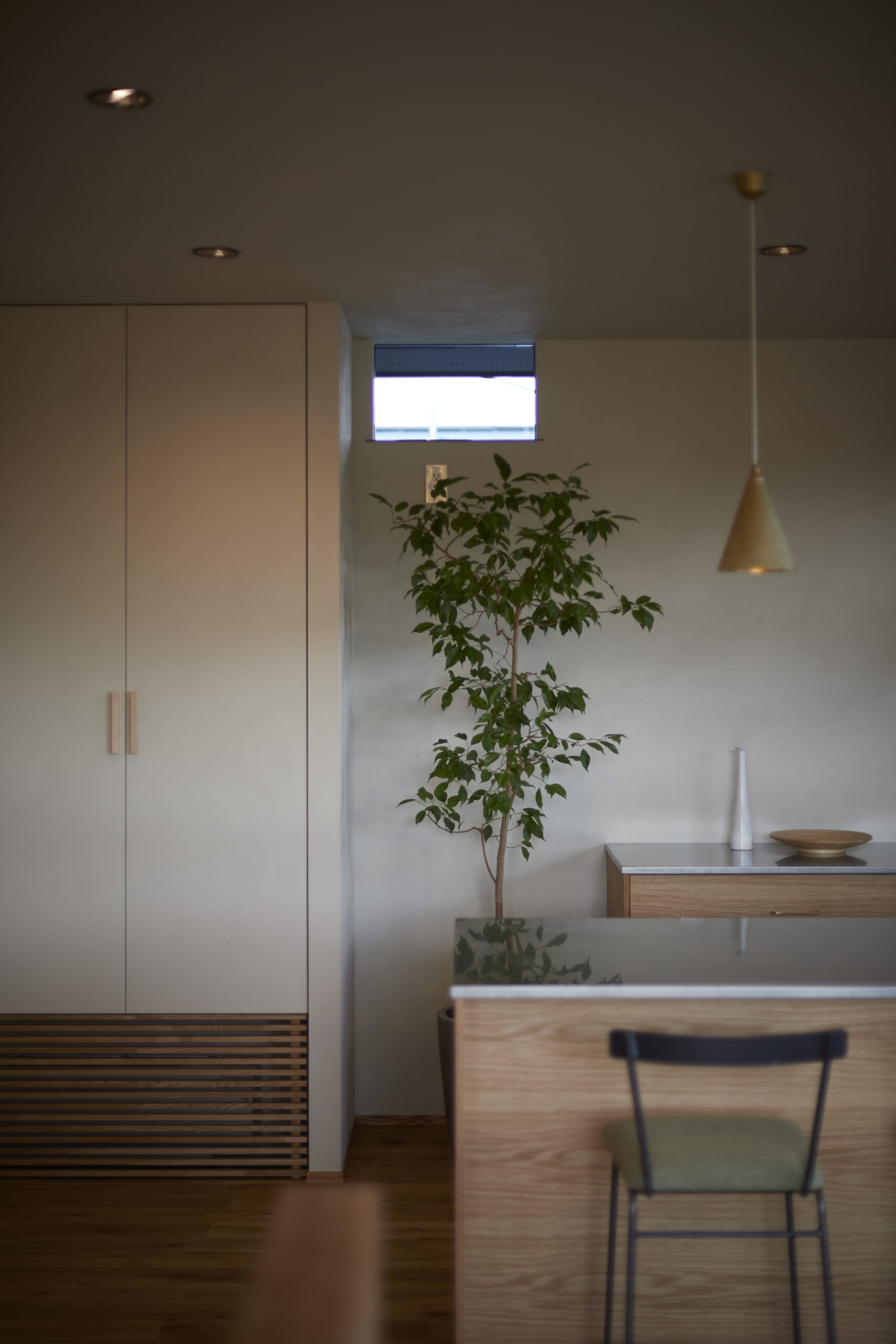 玄関から始まる心地よさ: シューズクロークには鍵やスマートフォンを置くことができるオープンスペースを設置。ちょっとしたものを置くのに便利で、来客時もスマートな印象を与えます。