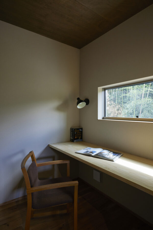 書斎は寝室の隣に設けていただいたおかげで、静かでとても落ち着ける空間になりました。窓から外を眺めながら過ごせるのもいいですね。また、キッチンにはコーヒーミルや豆をすっきりとしまえる大容量の収納もつくってもらい、細やかな配慮のおかげで理想の暮らしが実現でき、大変満足しています。