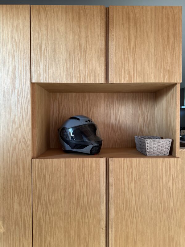 玄関のオープンスペースに、ロッカーと小物置きに台をつくっていただきました。