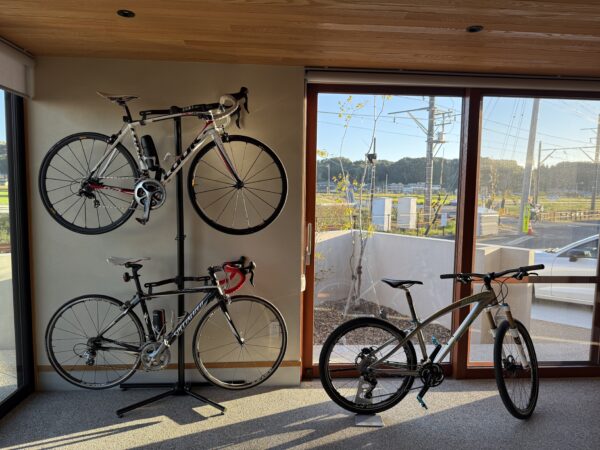 空間全体がとても広く感じられ、実用面でも土間には愛用の自転車を3台置いて、メンテナンスする場所として活用しています!